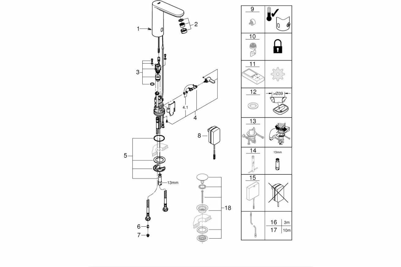 СохранитьСмеситель инфракрасный для раковины GROHE Eurosmart Cosmopolitan E, 230V, L-размер, хром 36421000 интересное: