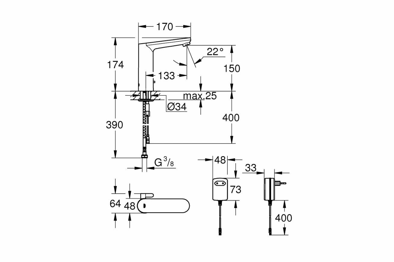 Смеситель для раковины GROHE Eurosmart Cosmopolitan E инфракрасный, питание от сети 230V, хром (36421000)