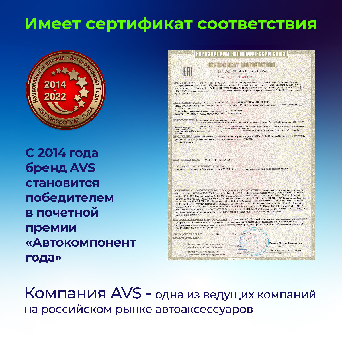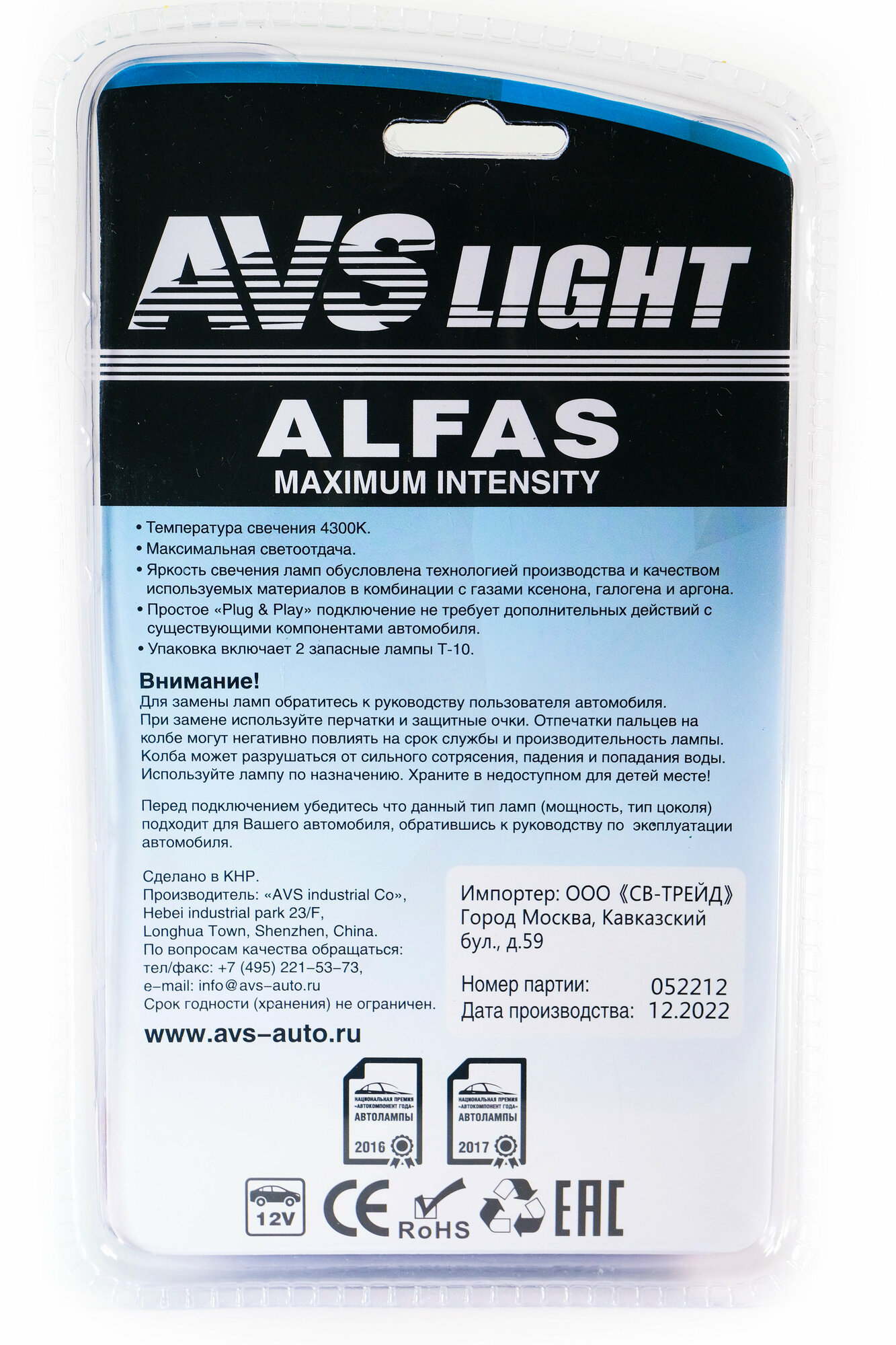 | Дополнительная информация | Автолампа AVS ALFAS на 130% ярче стандартных ламп. |