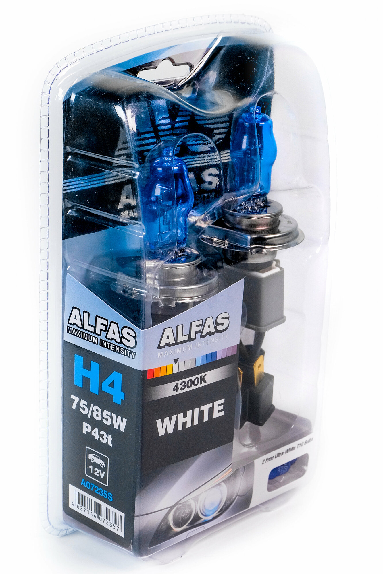 Купить Газонаполненная автомобильная лампа H4 AVS "Alfas" +130% / 12V 75/85W / кт. 2+2Т-10 (4300K)