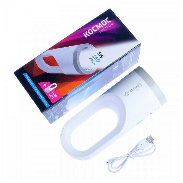 Фонарь аккумуляторный LED 5Вт + LED 19Вт аккум. 3.7В 10.8А. ч USB-шнур космос KOSAccu9105W_pearl