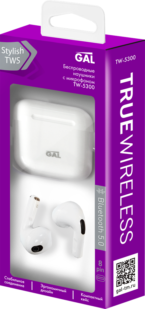 Наушники беспроводные GAL TW-5300, белый