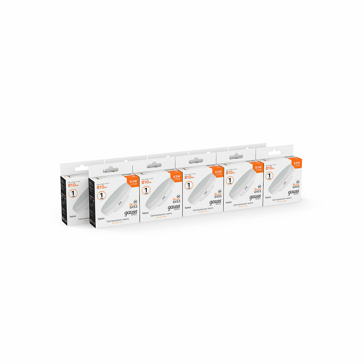Упаковка ламп LED GAUSS GX53, таблетка, 8.5Вт, 20849192, 10 шт.
