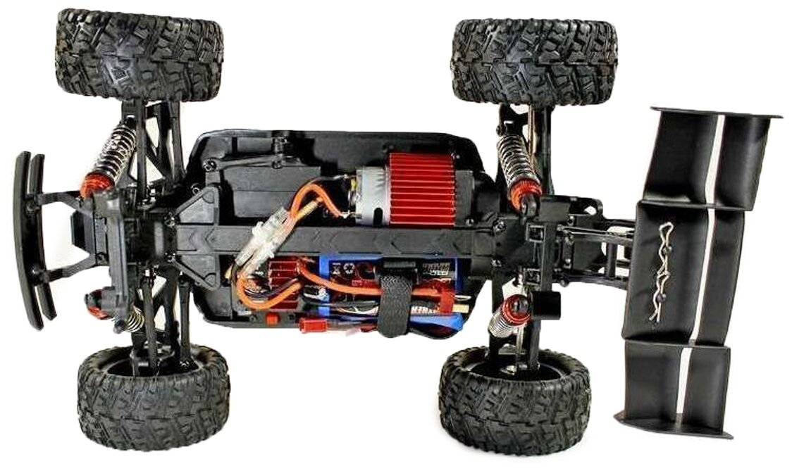 | Плюсы: | Много запчастей модернизированых. Дальность действия пульта, проходимость. Скорость. Минус амортизаторы сухие, масло не держут. Аккумулятора хватает в среднем минут на 20. Хорошо светят фары ночью. |