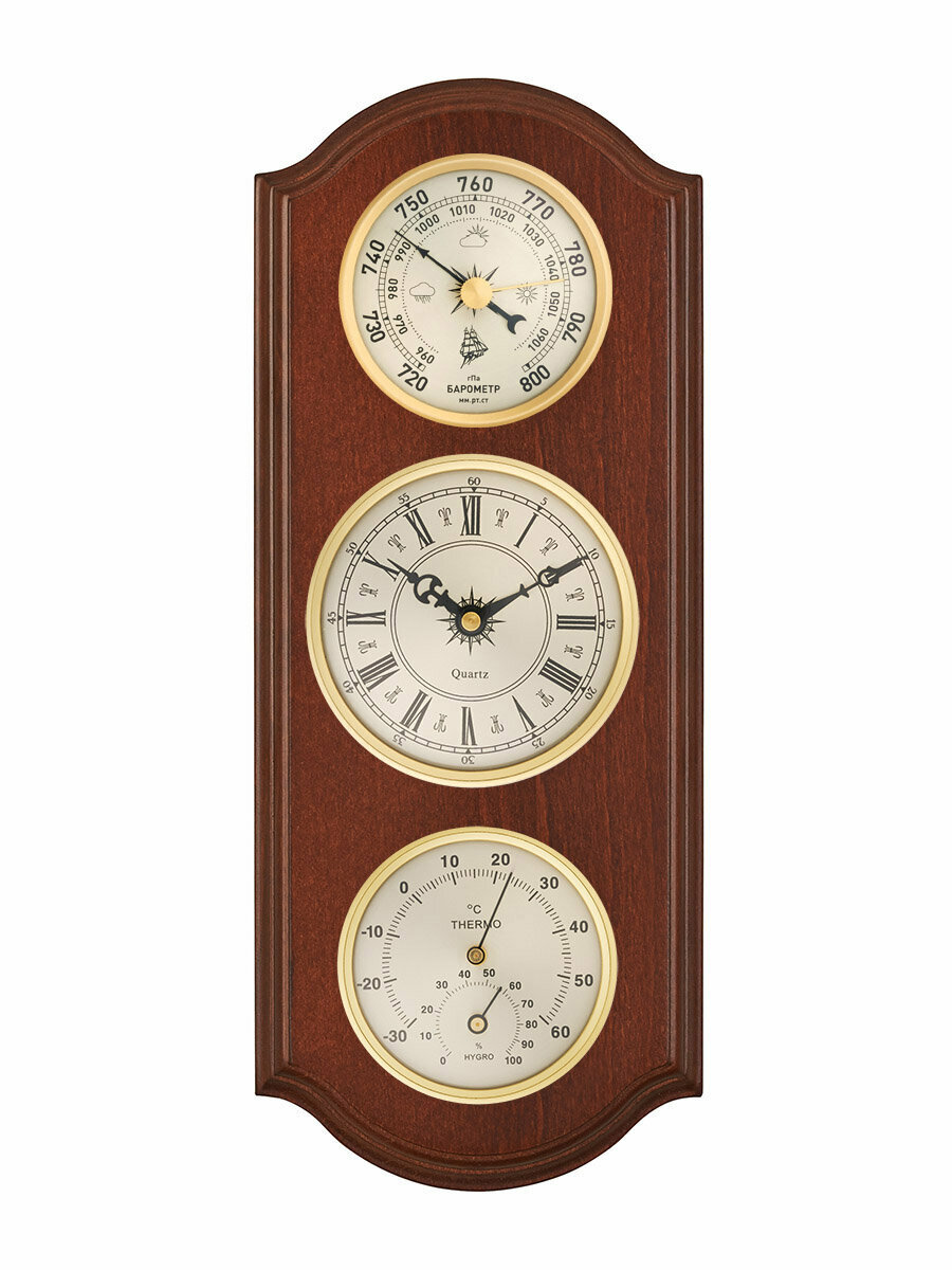 Метеостанция Бриг КМ93005-ЧБ(ТГ)-М, настенные часы, барометр, термометр, гигрометр, настенное крепление. интересное:
