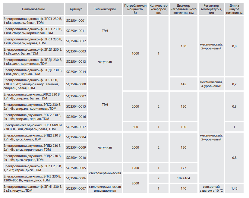 Ниже Вы можете прочитать отзывы на Электроплитка двухконфорочная , ЭПД2, 230 В, 2х1 кВт, диск, белая TDM SQ2504-0004 (1 шт.), ознакомится с подробными характеристиками, посмотреть интересные обзоры и фотографии на Электроплитка двухконфорочная , ЭПД2, 230 В, 2х1 кВт, диск, белая TDM SQ2504-0004 (1 шт.).