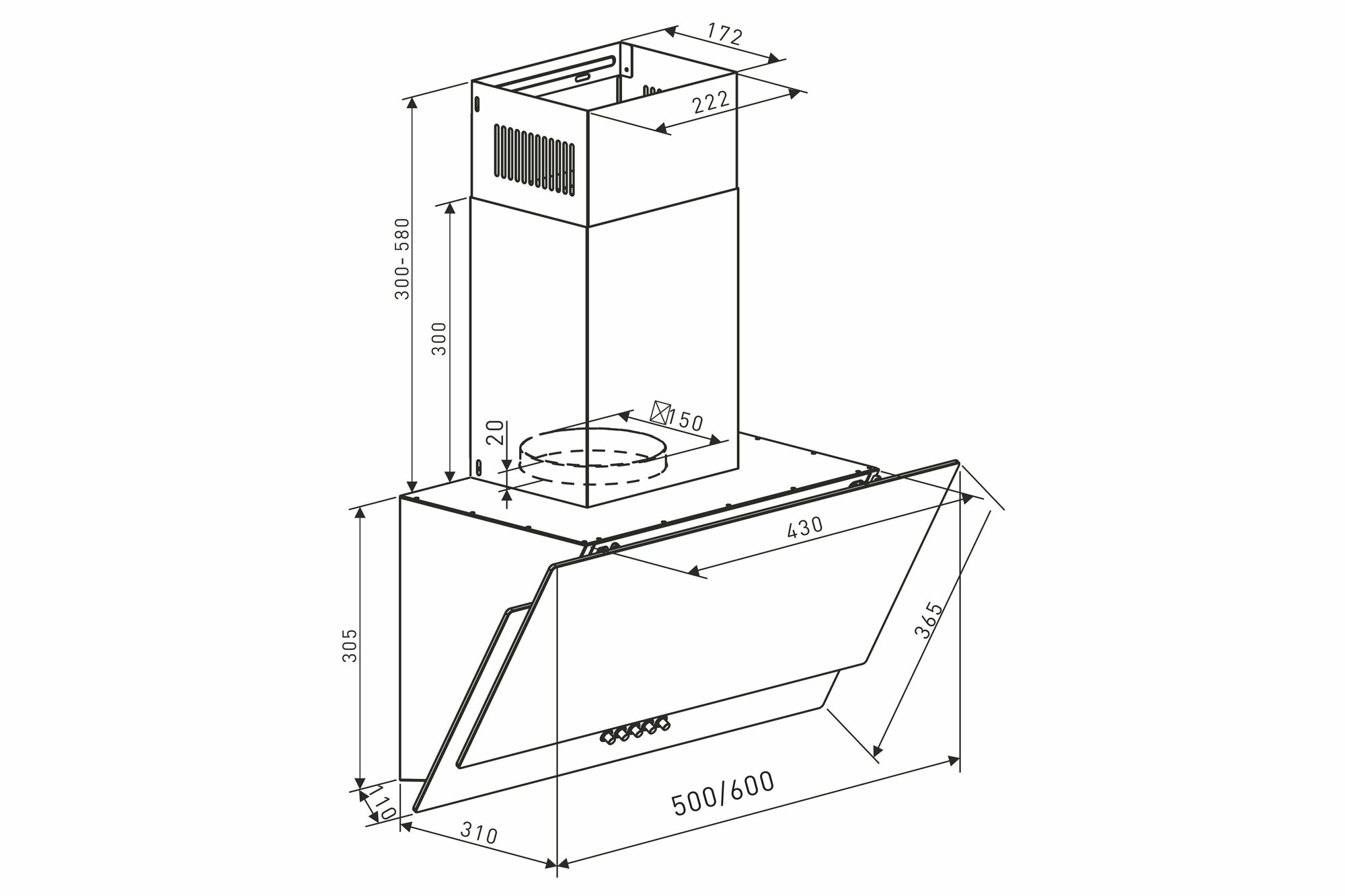 Вытяжка каминная OASIS NC-60W, белый, кнопочное управление