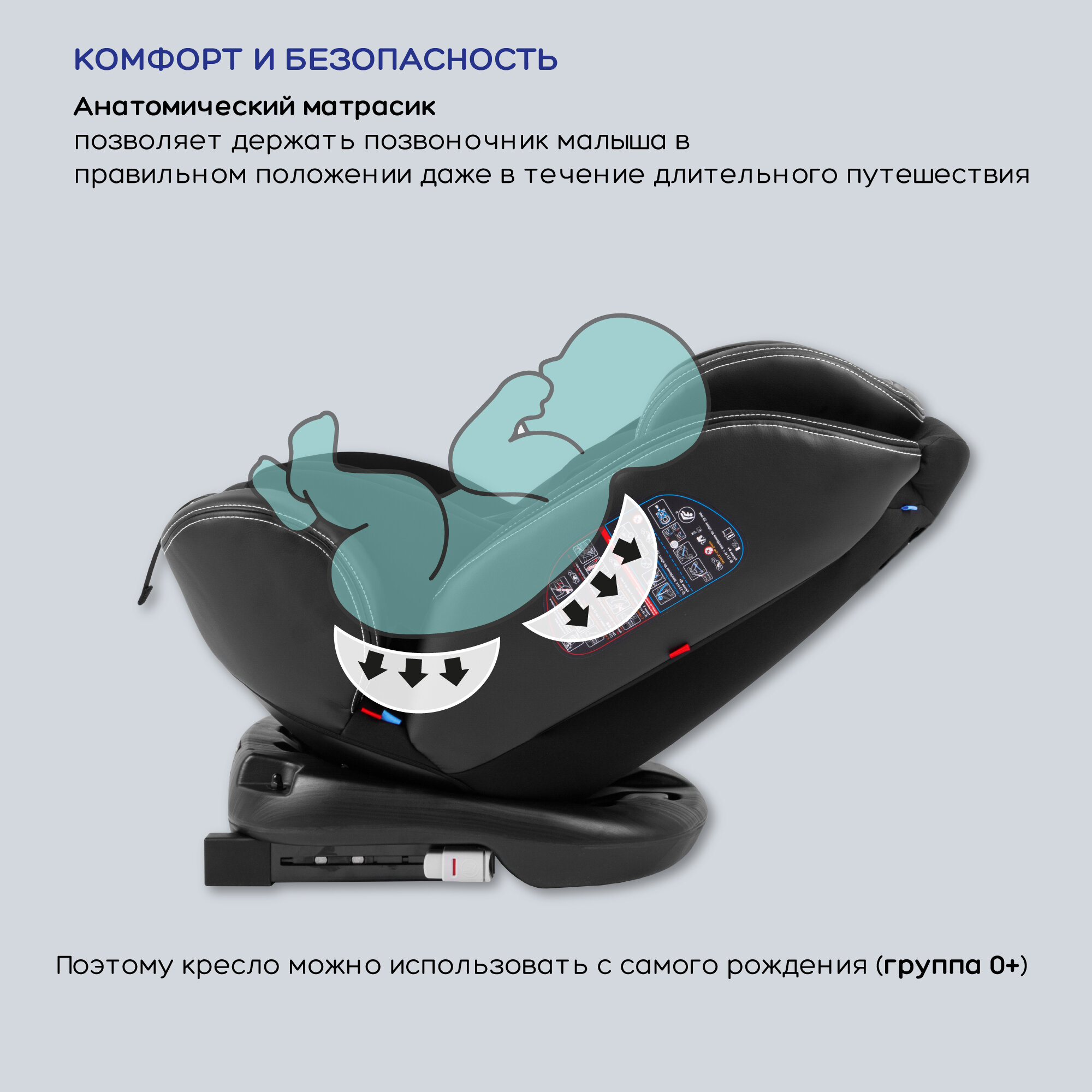 | Опции | поддержка головы новорожденного / съемные внутренние ремни / защита от боковых ударов / поворотный механизм |