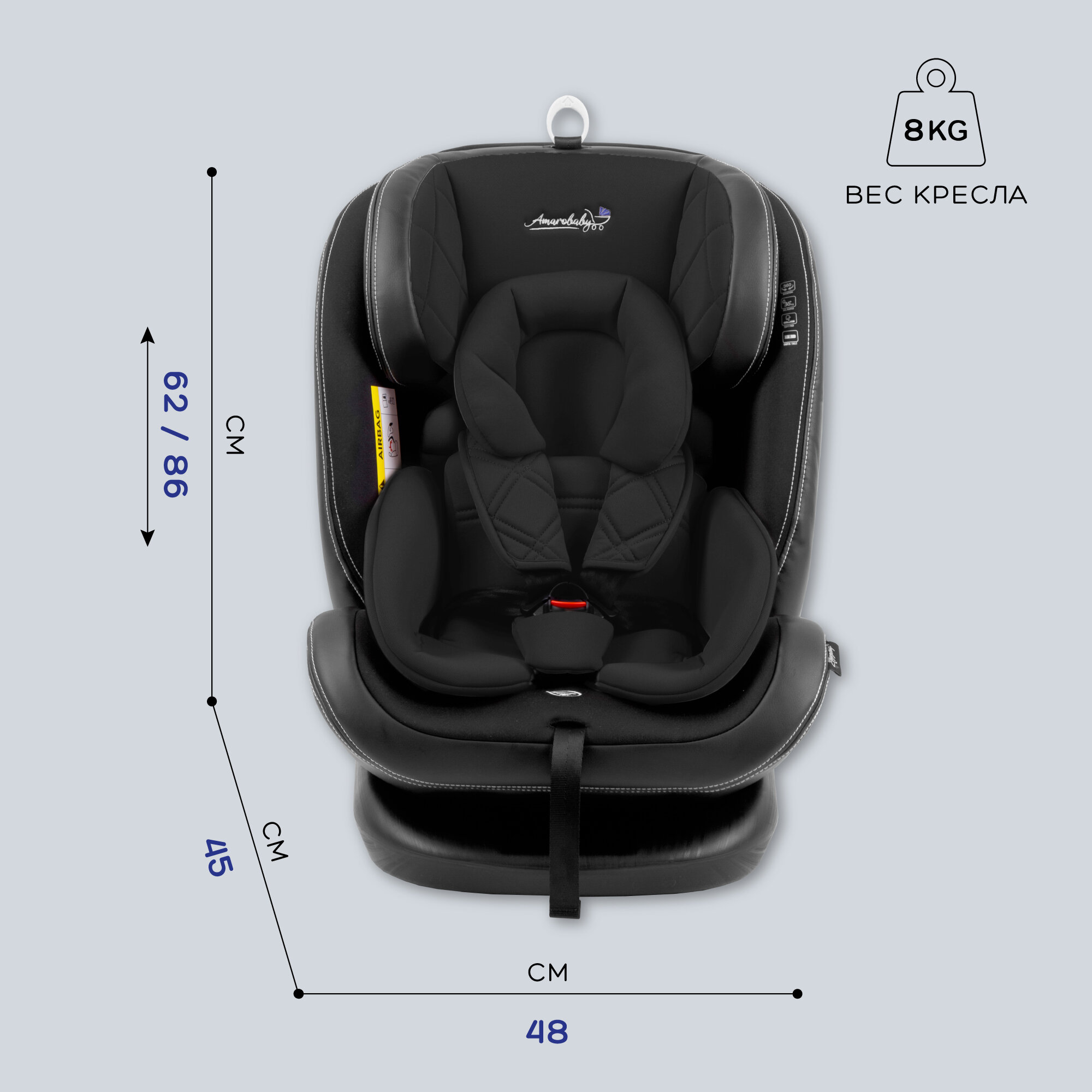 Автокресло детское AMAROBABY ST-3, Isofix класс D, группа 0+/1/2/3, (черный)