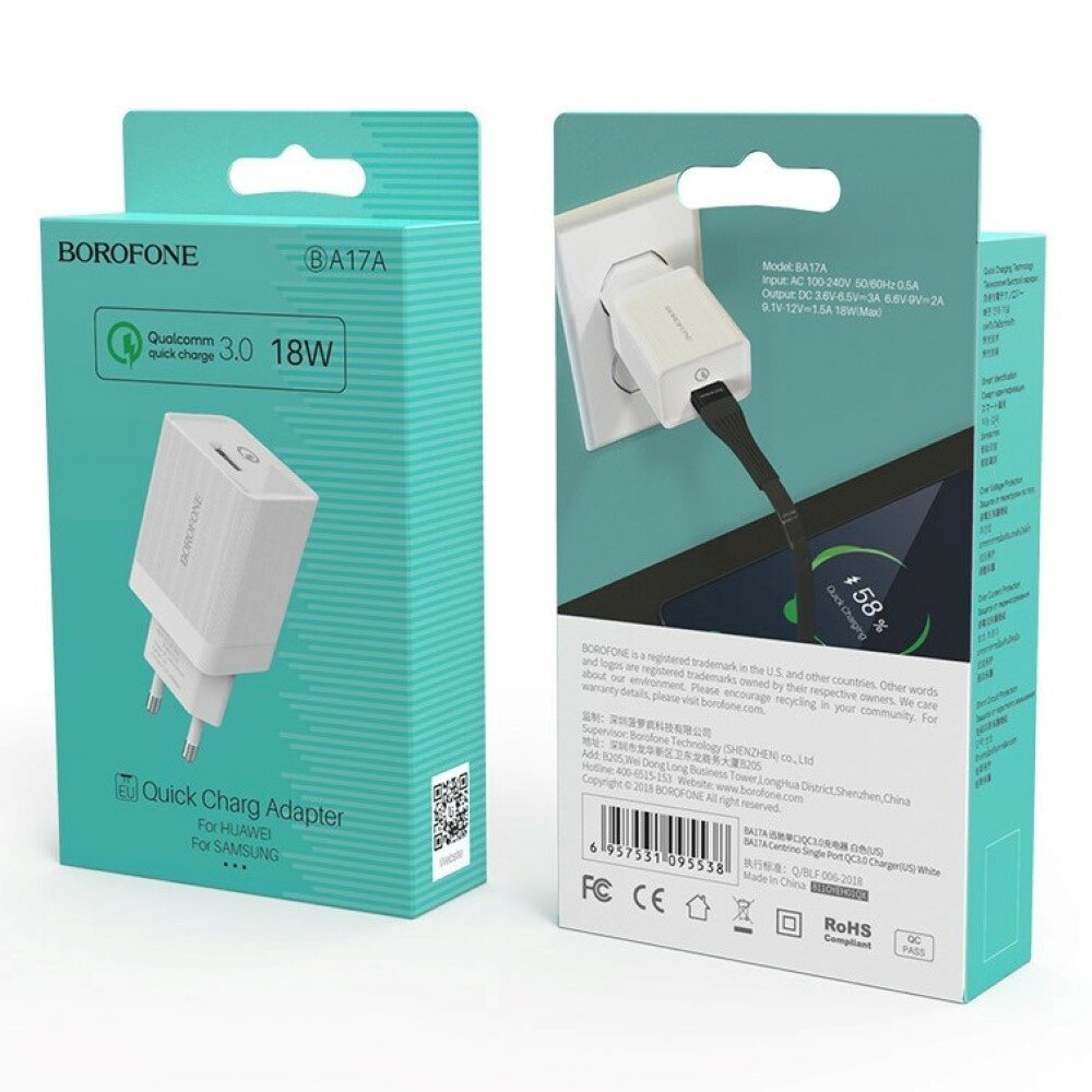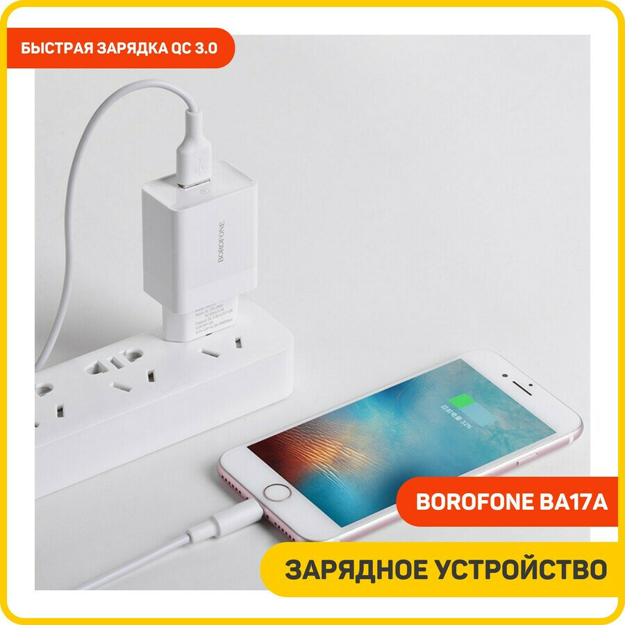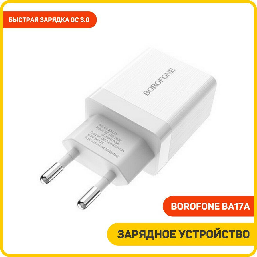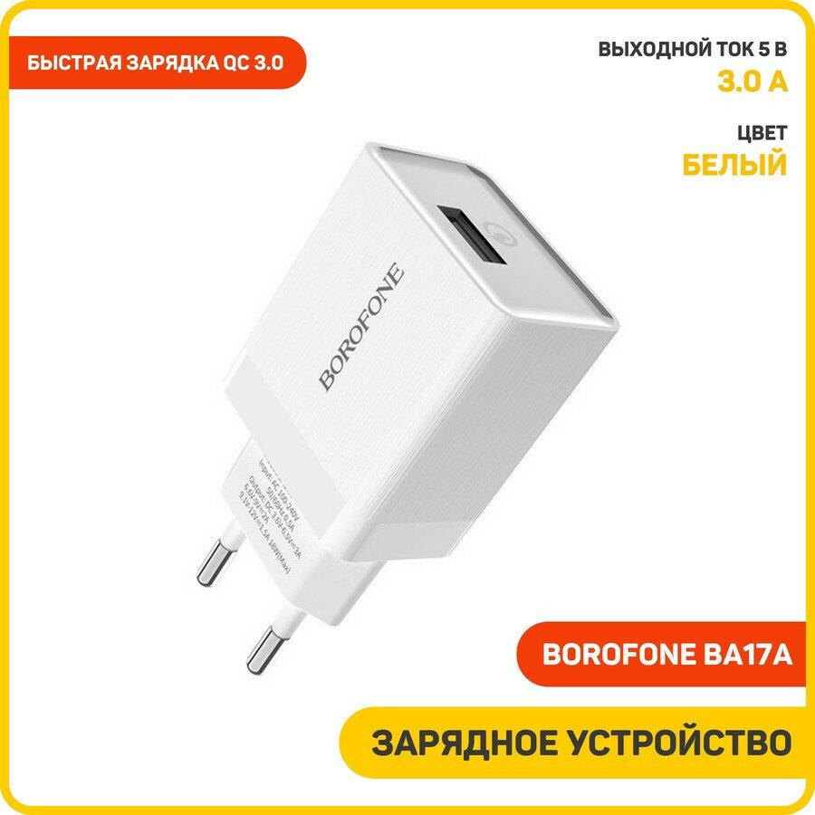 Сетевое зарядное устройство (СЗУ) Borofone BA17A QC 3.0 (USB) 3 А, белый интересное: