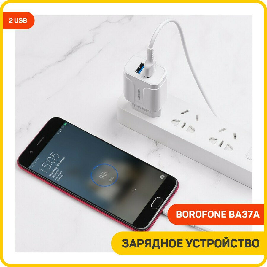 СохранитьСетевое зарядное устройство (СЗУ) Borofone BA37A (2 USB) + кабель MicroUSB, 2.4 А, белый интересное: