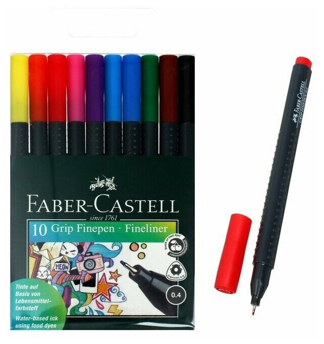 Faber-Castell Набор капиллярных ручек "Grip", 10 цв.в пенале 0.4мм интересное: