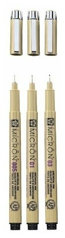 Набор линеров Pigma Micron, капиллярные ручки 3 шт. (0,2 мм., 0,25 мм., 0,35 мм.), цвет чернил: черный