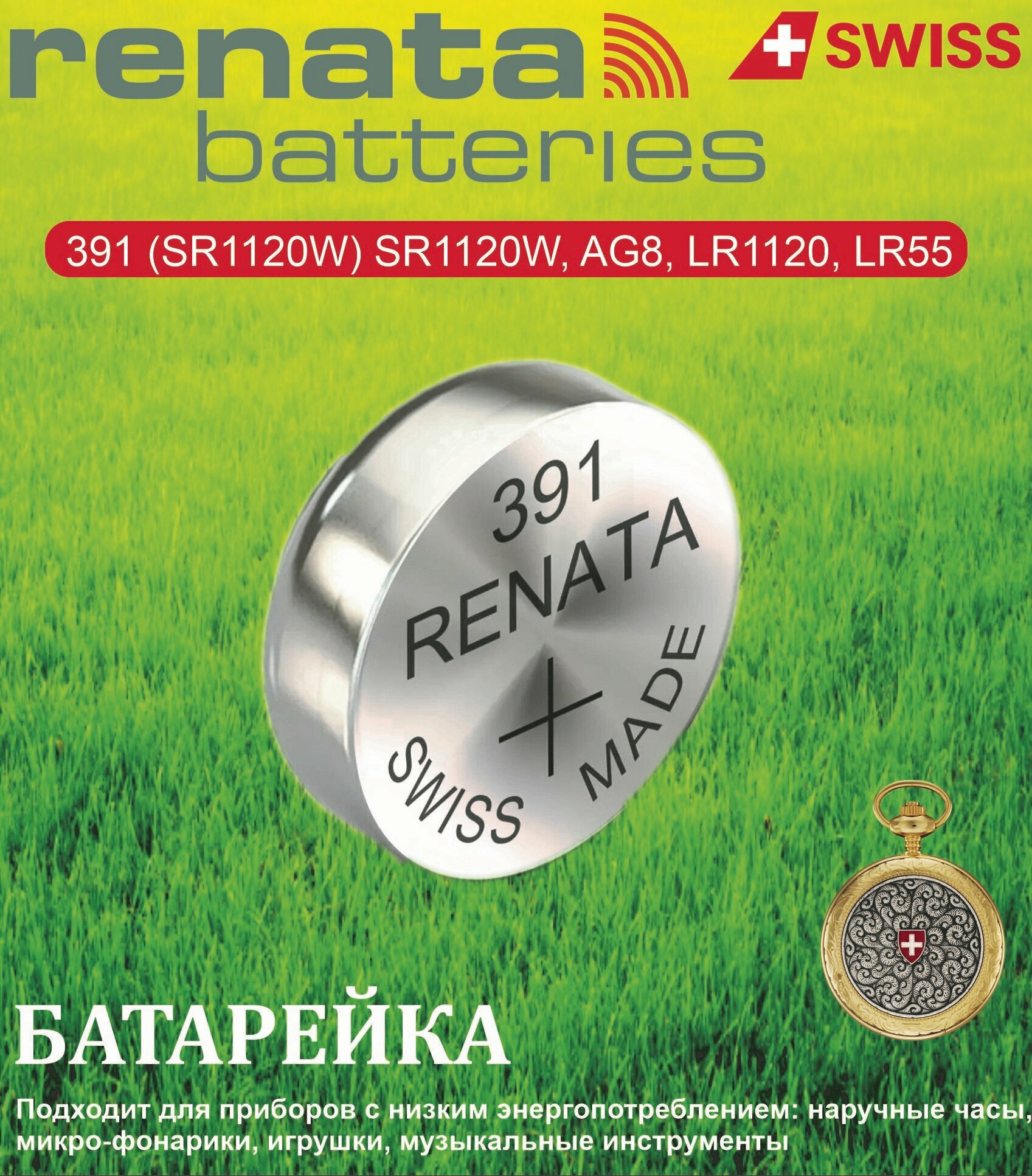 Батарейка Renata 391, SR1120W, упаковка 10 шт.