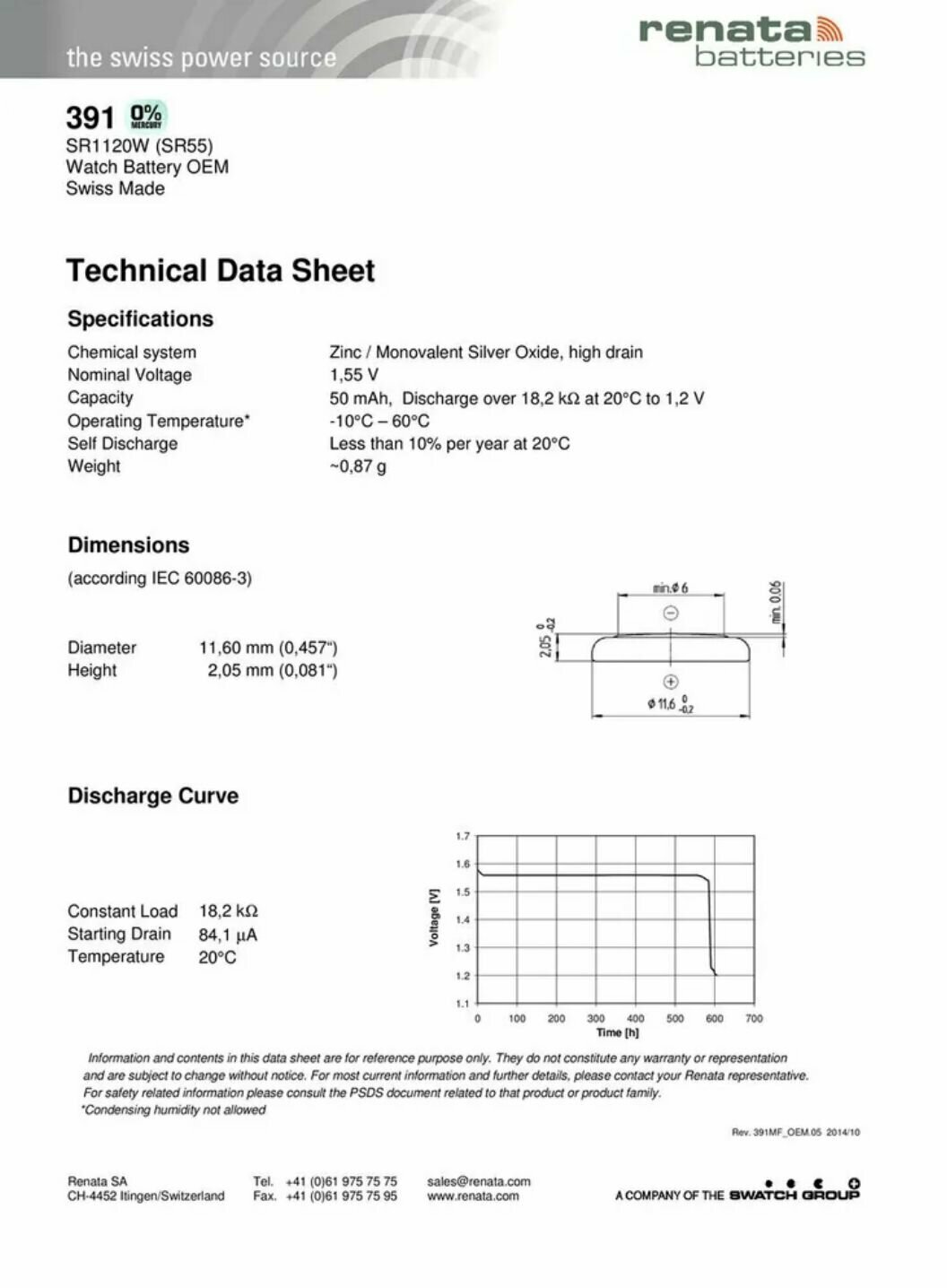 СохранитьБатарейка renata R391 (SR1120W), 1.55 В интересное: