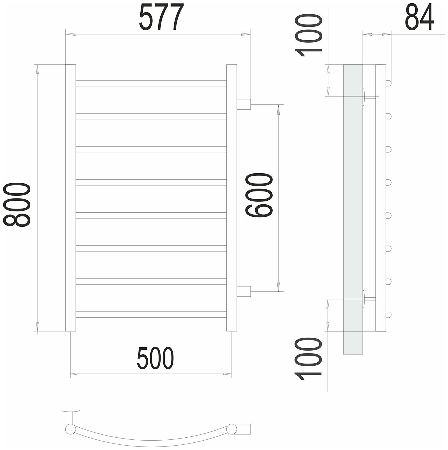 П/сушит. Классик П8 бок.подкл, м/о 600, 500*800мм,Terminus (Россия), арт.КлассБП8(600)-500800