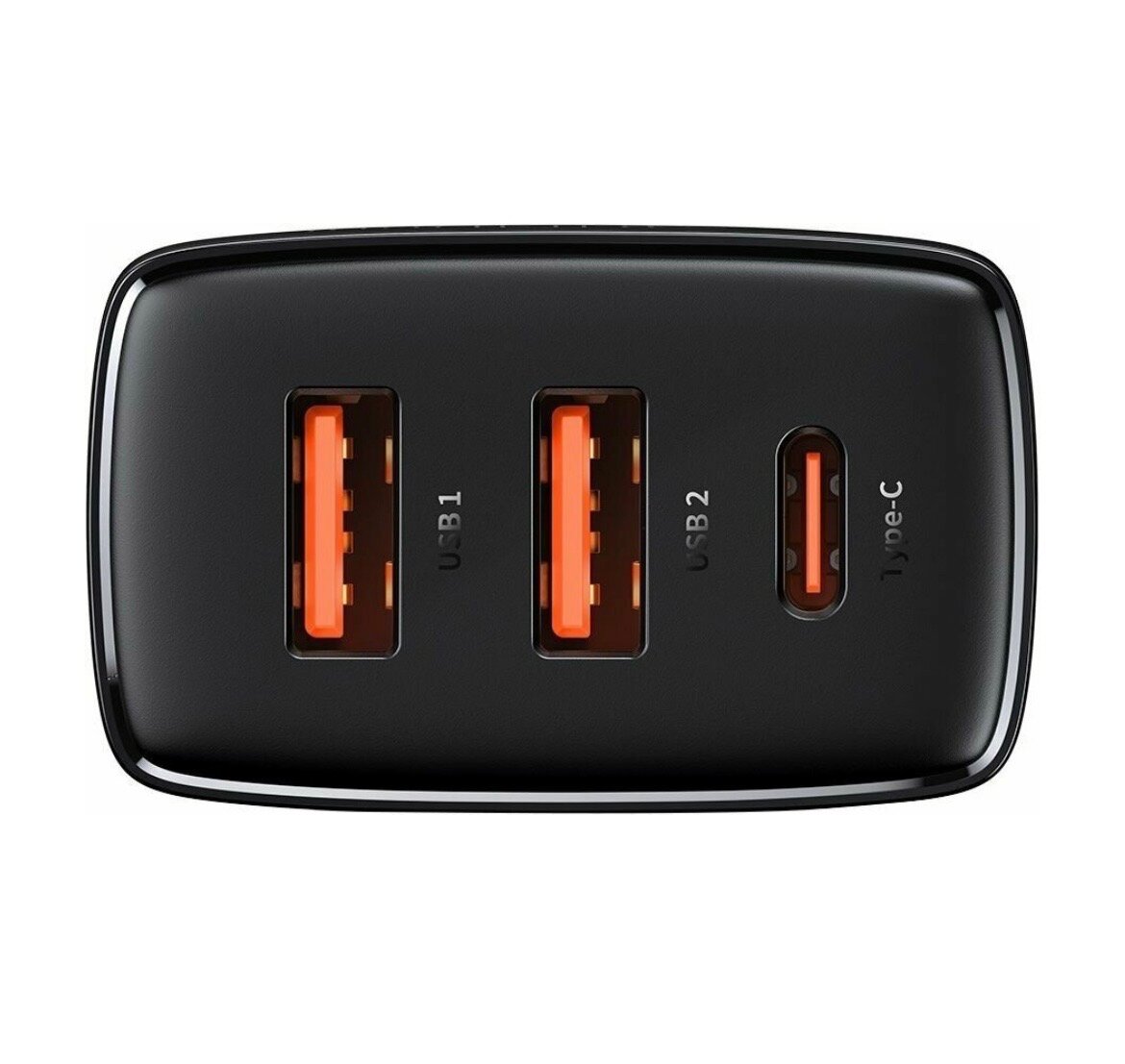 Зарядное устройство Baseus Compact Quick Charger 2*USB+USB-C, 3A, 30W, черный