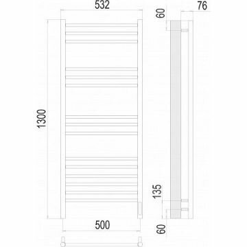 Аврора (Sensor quick touch) электрический полотенцесушитель TERMINUS (530 мм / 1300 мм / 500 мм)