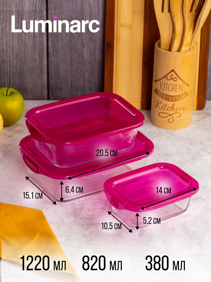 Luminarc Набор контейнеров Keep`n Box с термосумкой 0.38 л, 0,82 л, 1.22 л, розовый