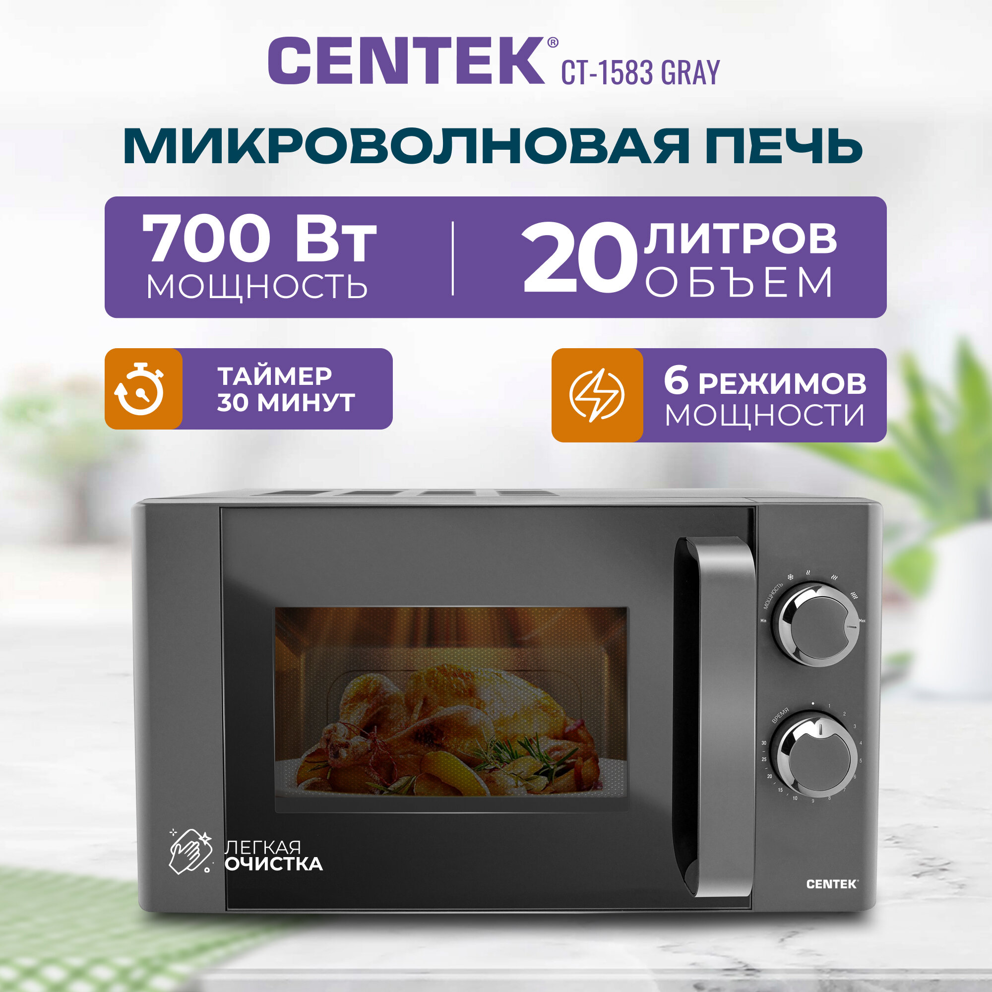 Centek СВЧ/серая/ 700W, 20л, 6 режимов CT-1583 Gray