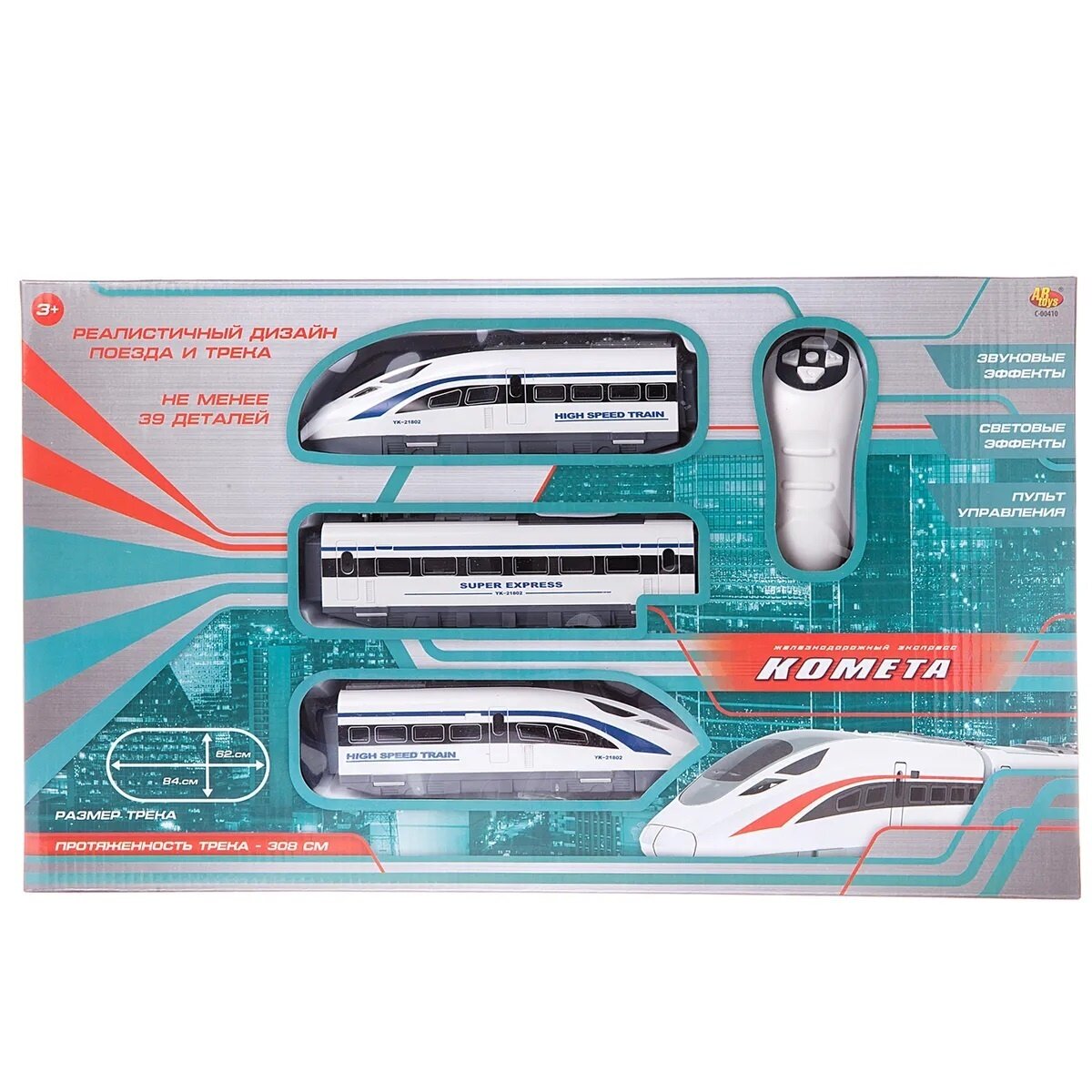 Железная дорога ABtoys комета Железнодорожный экспресс", с пультом управления, белый поезд, со световыми и звуковыми эффектами C-00410