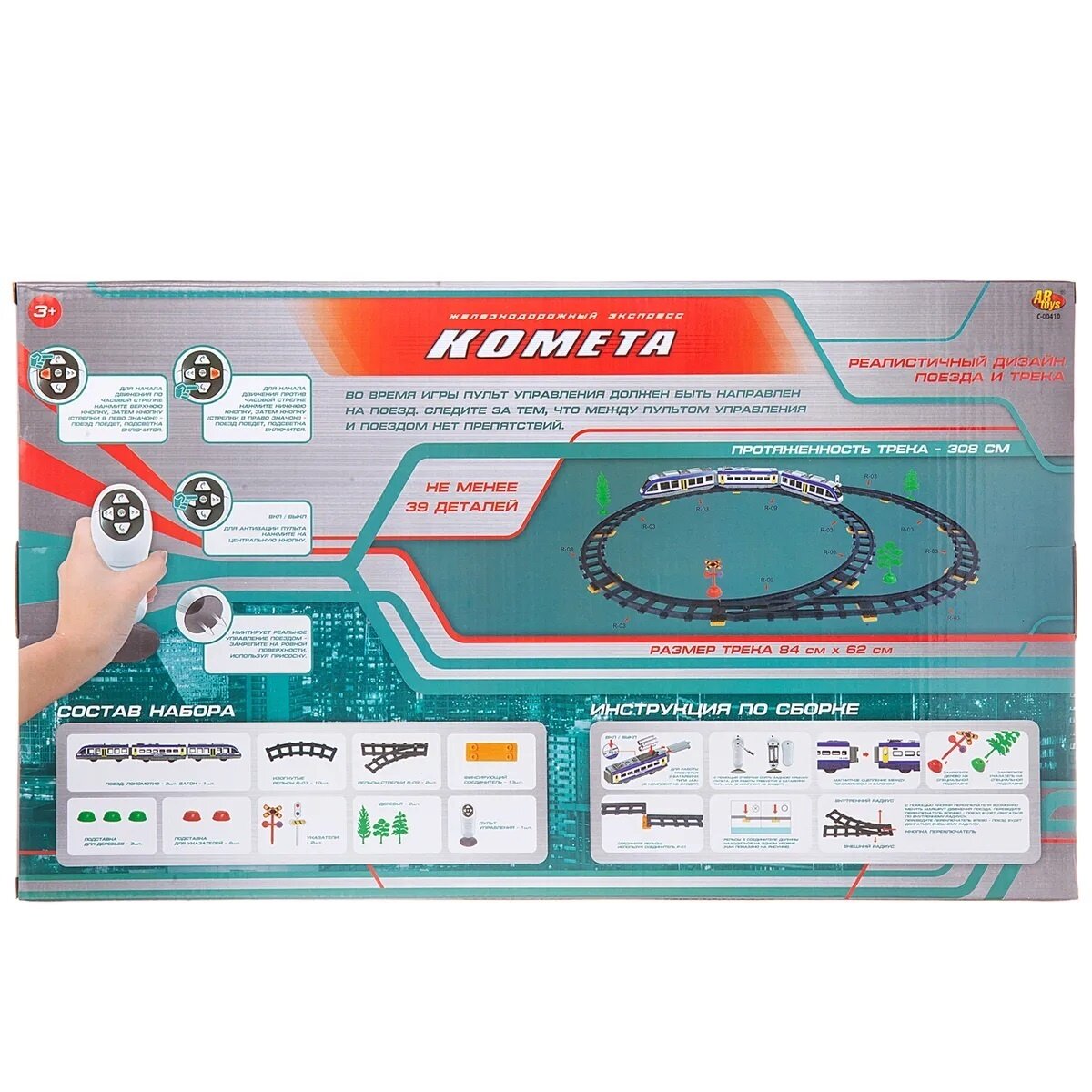 Железная дорога ABtoys "Комета, Железнодорожный экспресс", 308 см, пульт управления, свет, звук (C-00410)