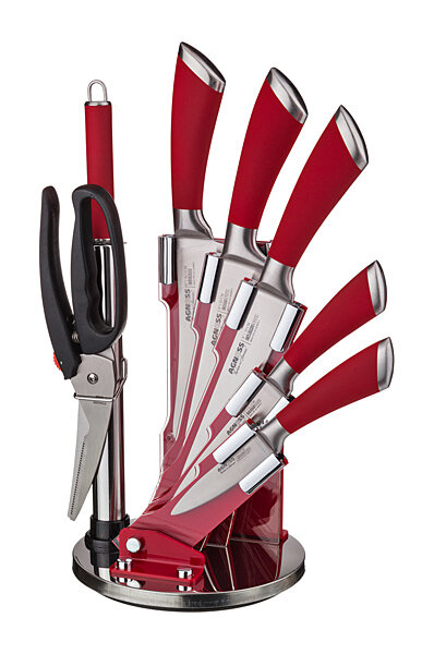 Набор ножей Agness, на подставке, 911-501, красный, 8 предметов