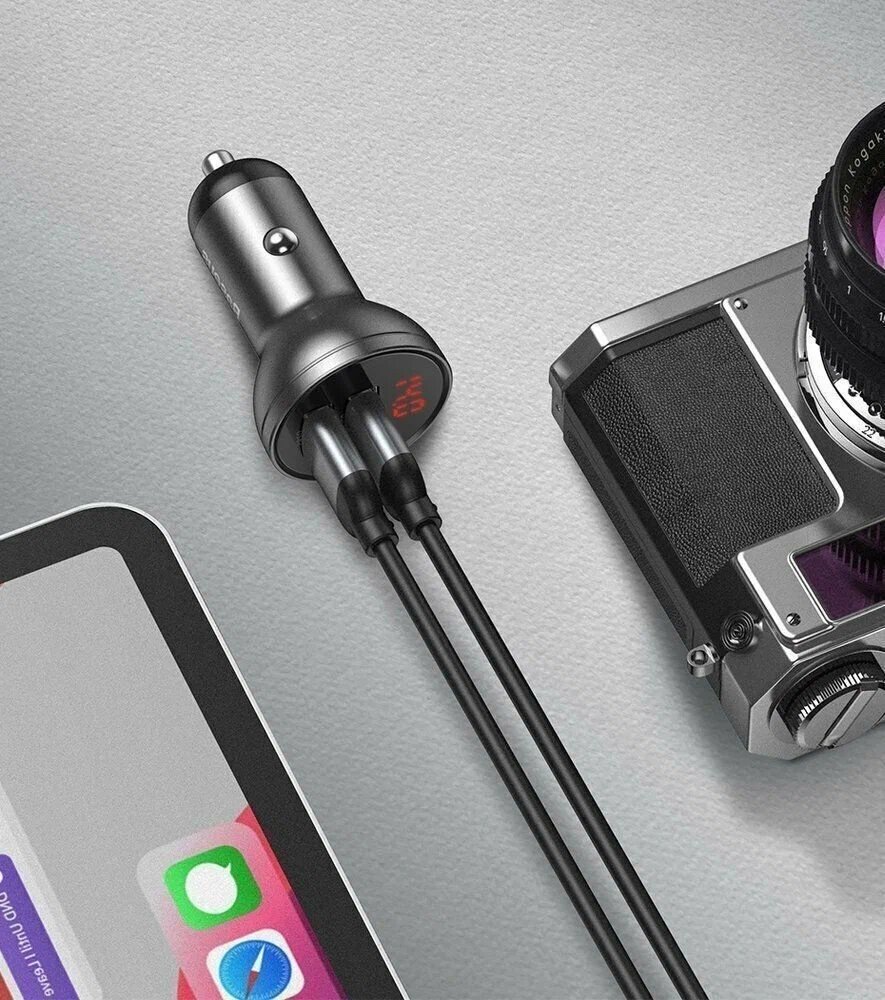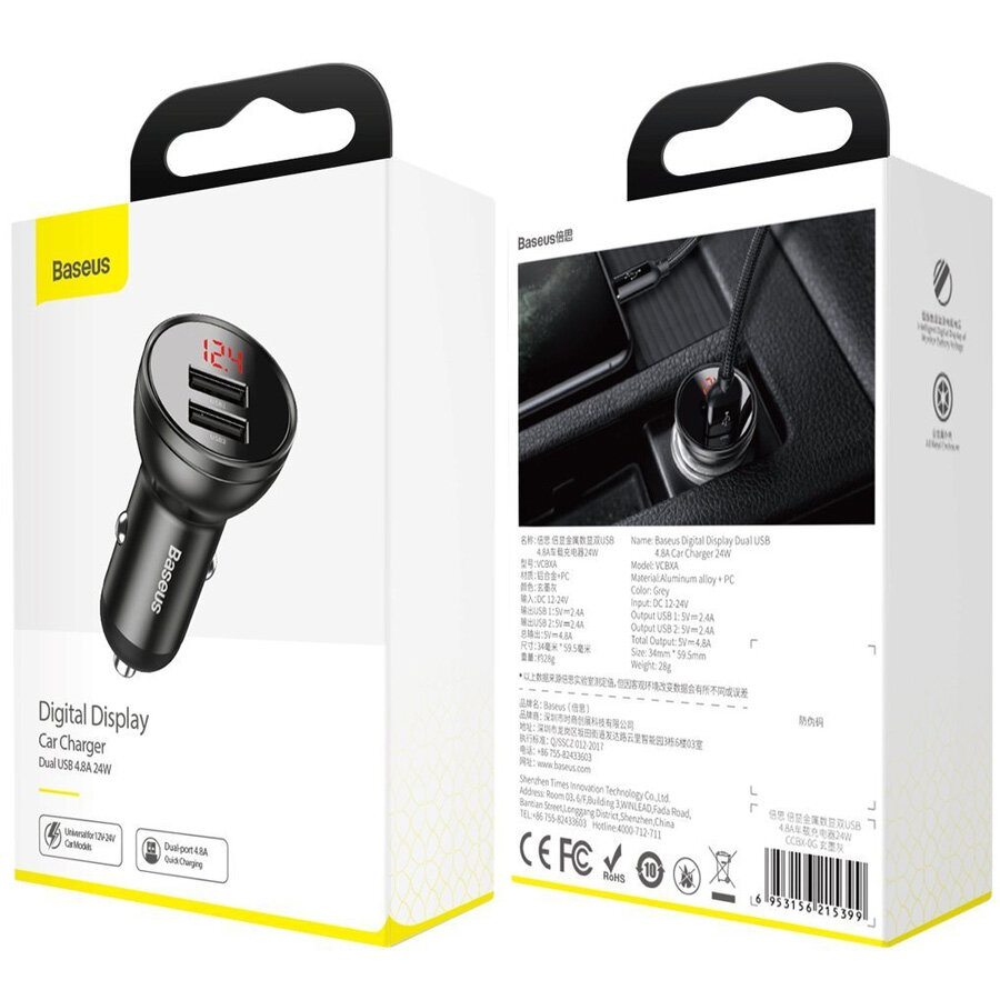 Автомобильное зарядное устройство Baseus Digital Display Dual USB 4.8A 24W (CCBX-0G), темно-серое интересное: