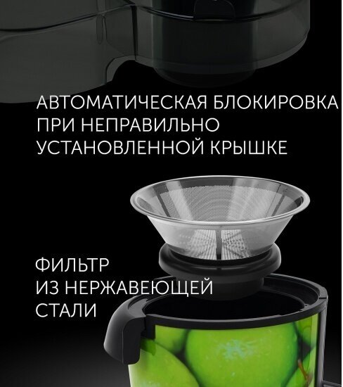 | Плюсы: | Хорошо справляется с яблоками и морковью. |