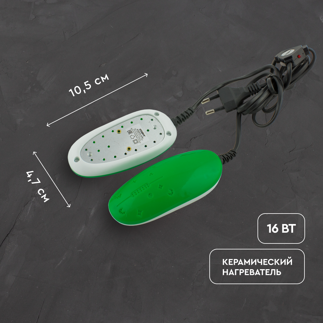 Сушилка для обуви SD08, 12 Вт, 10.5 см, индикатор, зелёная