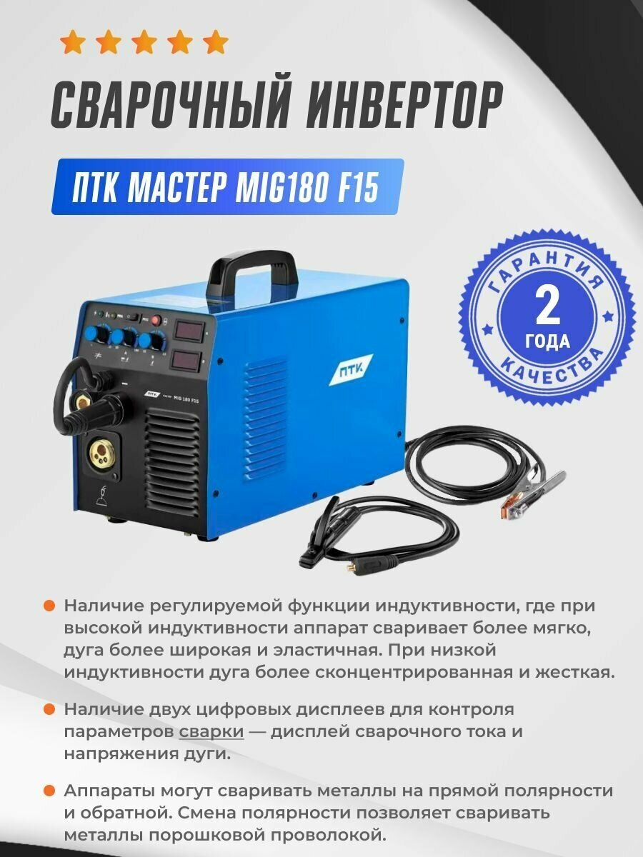 Купить Сварочный аппарат инверторного типа ПТК мастер MIG 180 F15, MMA, MIG/MAG