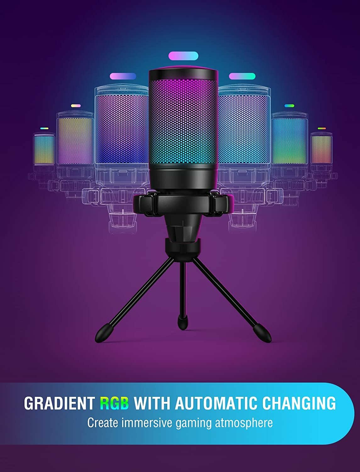 Конденсаторный USB Микрофон Fifine A6VB Ampligame с RGB-подсветкой (компьютерный, игровой, для стримов, для конференций, Blue)