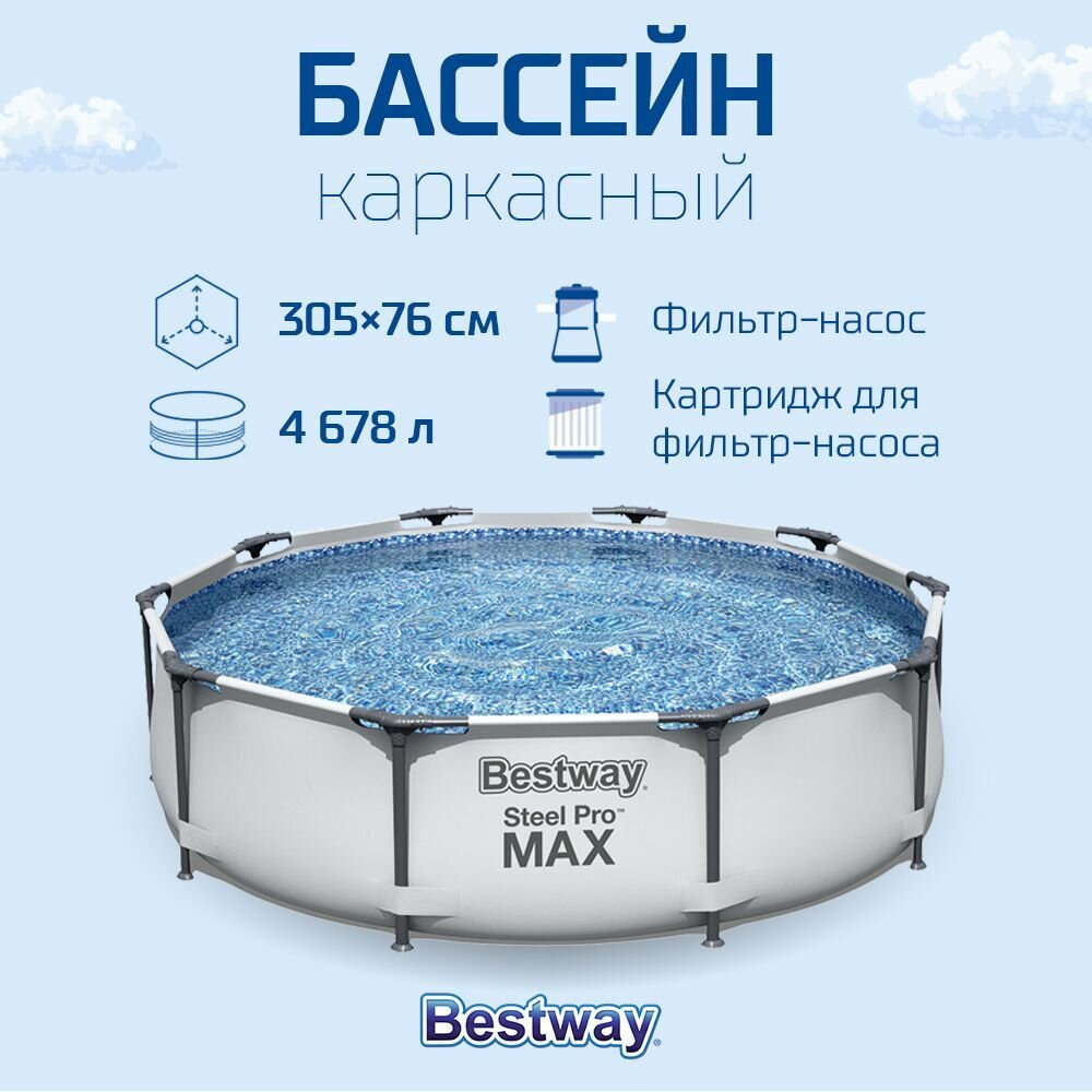 Купить Bestway Бассейн каркасный Steel Pro Max, 305 х 76 см, с фильтр-насосом, 56408 Bestway