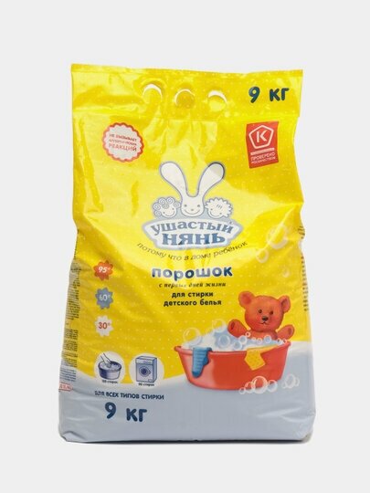 Купить Стиральный порошок Ушастый Нянь для стирки детского белья, 9 кг