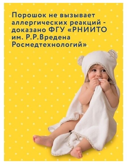 | Отзыв: | Так как я аллергик, пользуюсь только детским порошком, ушастик отлично подходит, не вызывает раздражений и зуда |