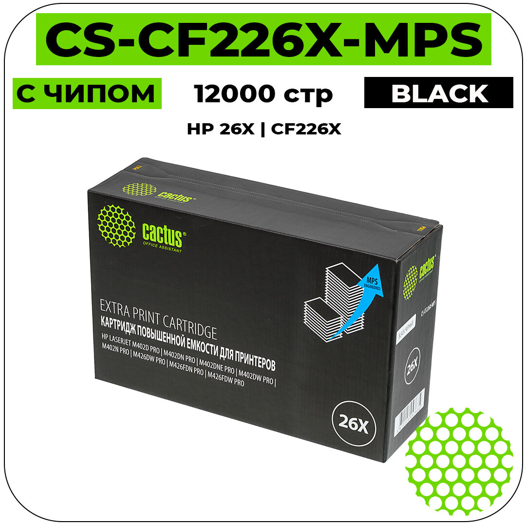 Картридж лазерный Cactus CS-CF226X-MPS черный (12000 страниц) для HP LJ M402d/M402n/M426dw/M426fdn/M426fdw