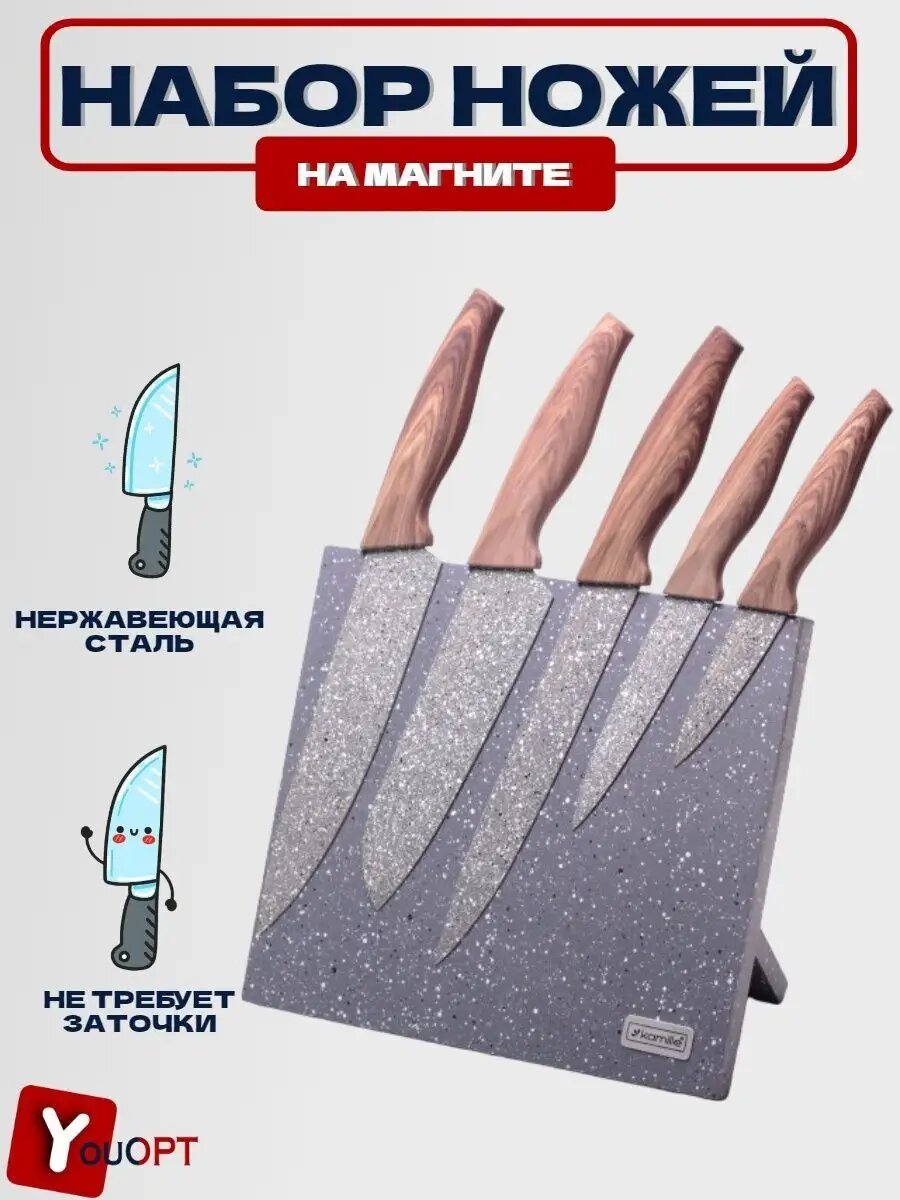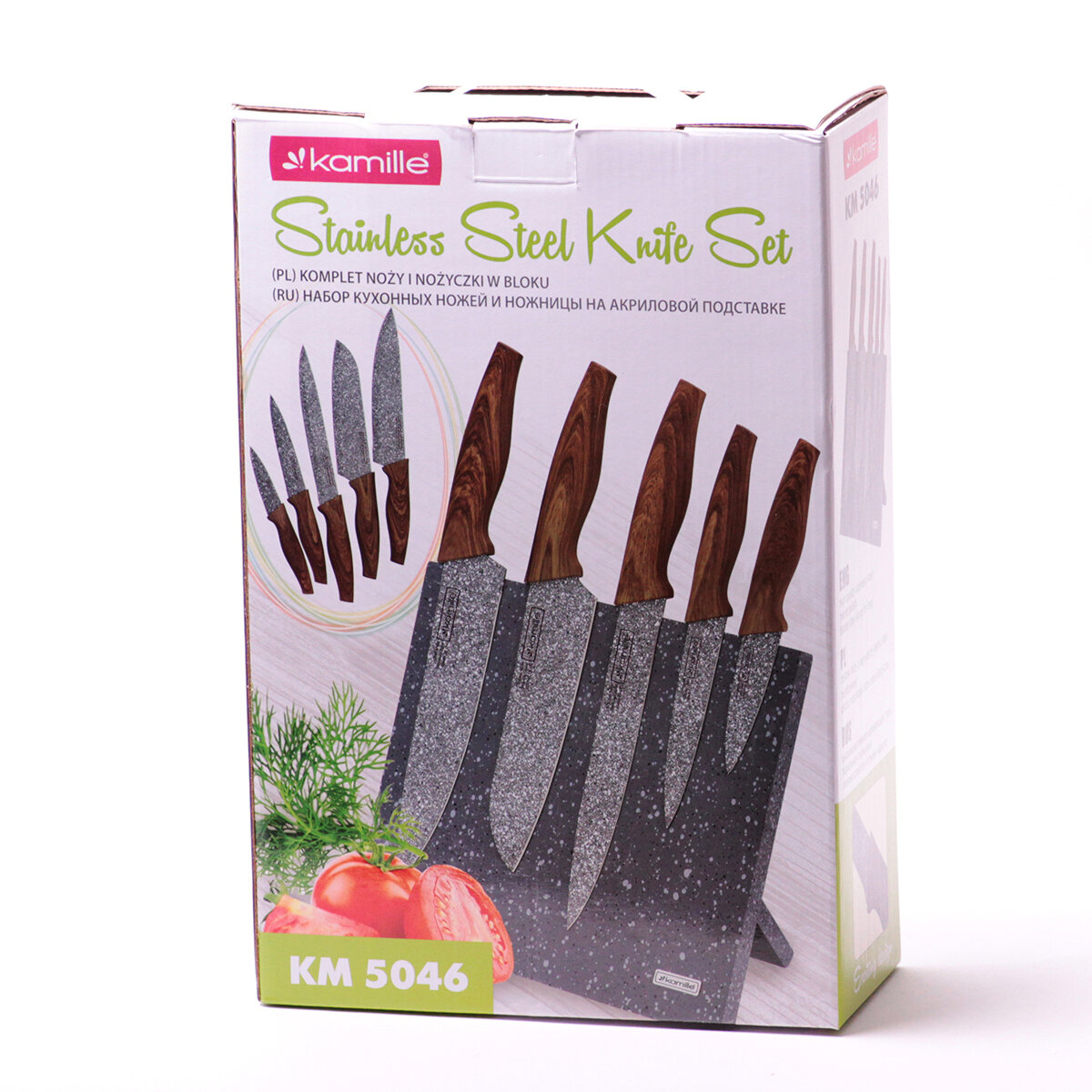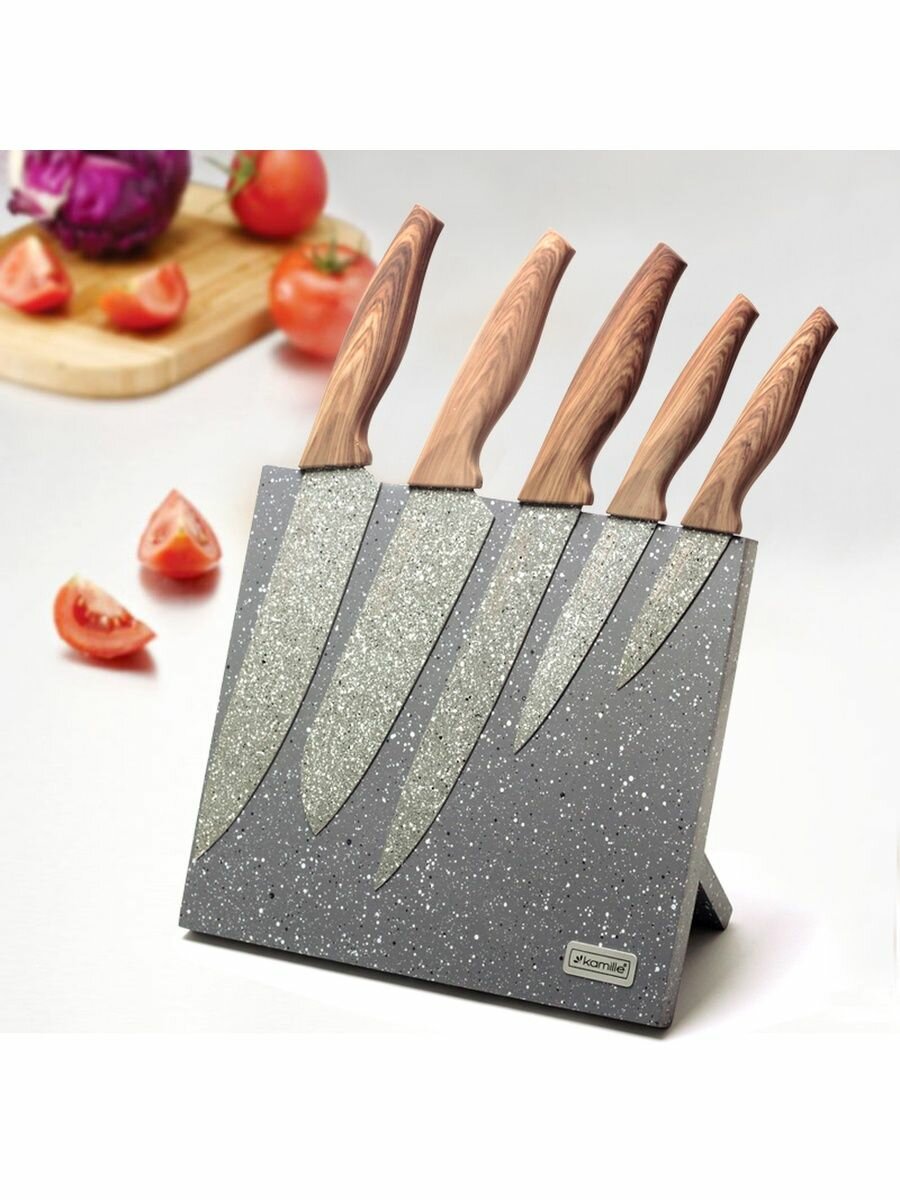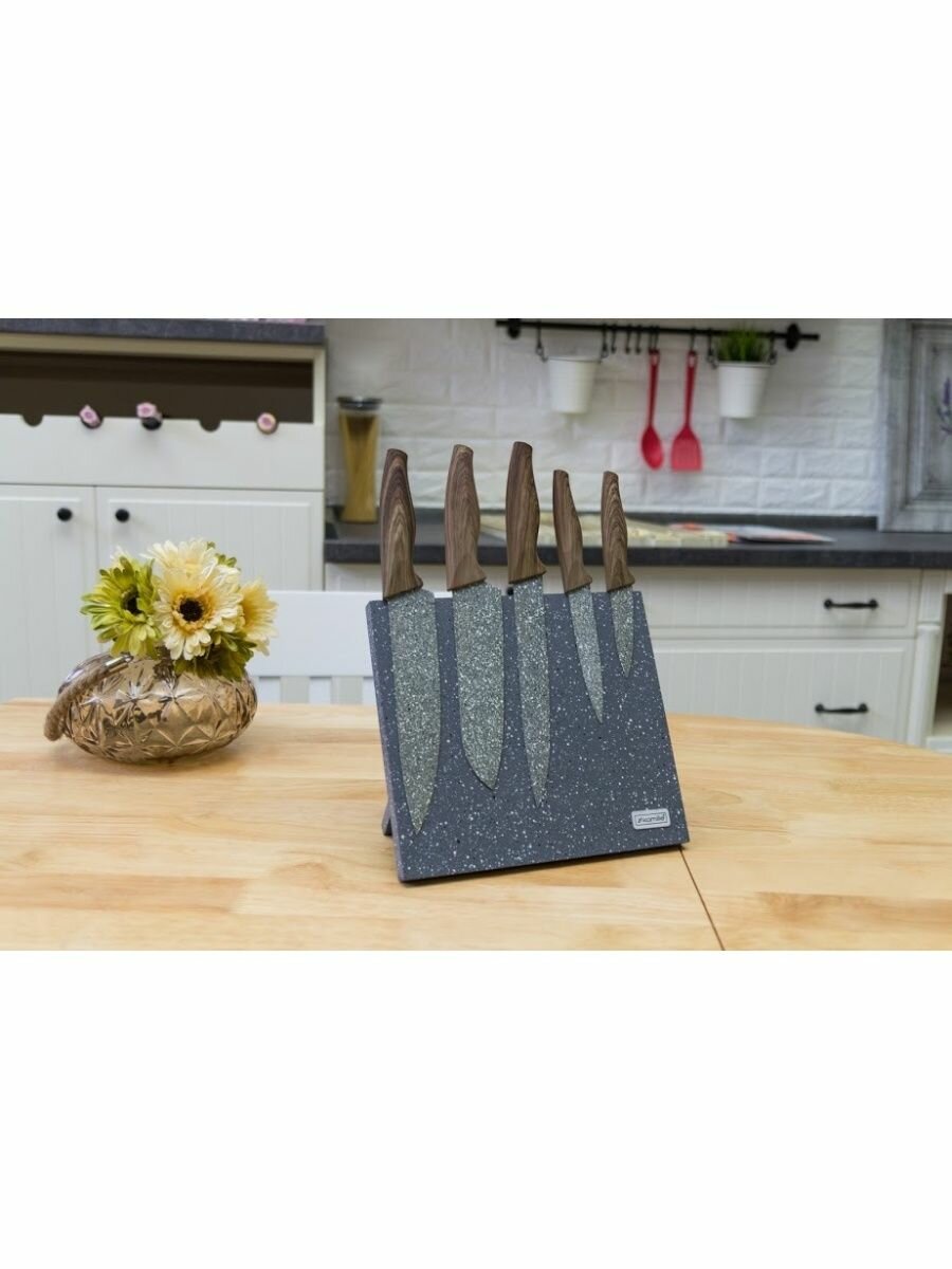 Набор ножей 6р из нерж.стали на подст.с мрамор.покрытием (5 ножей+подставка) 5046 интересное:
