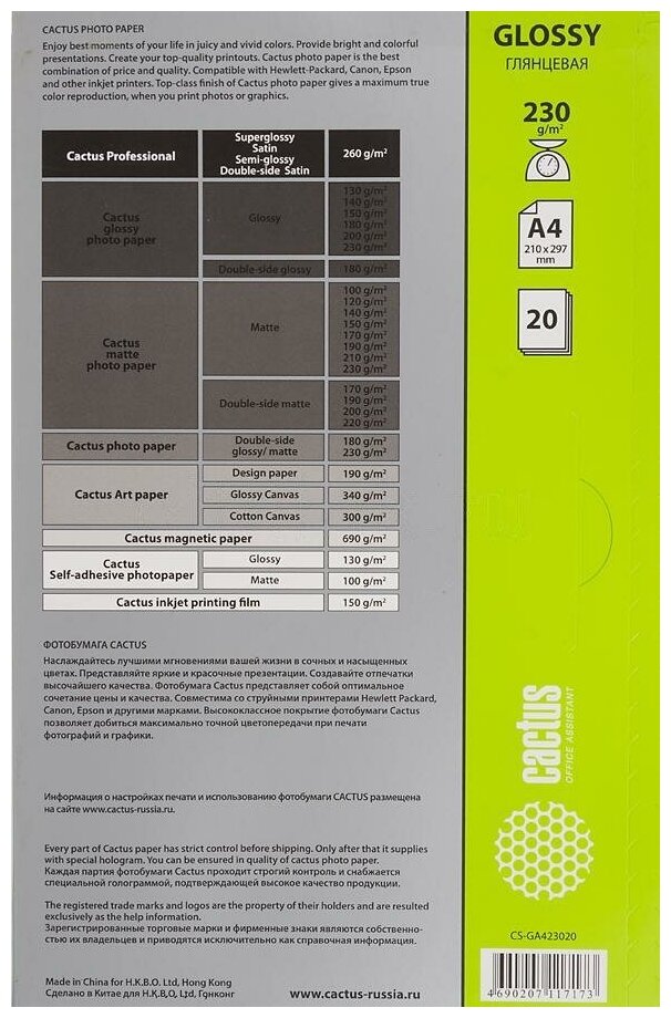 Ниже Вы можете прочитать отзывы на Фотобумага Cactus CS-MA412020ED A4/120г/м2/20л./белый матовое для струйной печати, ознакомится с подробными характеристиками, посмотреть интересные обзоры и фотографии на Фотобумага Cactus CS-MA412020ED A4/120г/м2/20л./белый матовое для струйной печати.