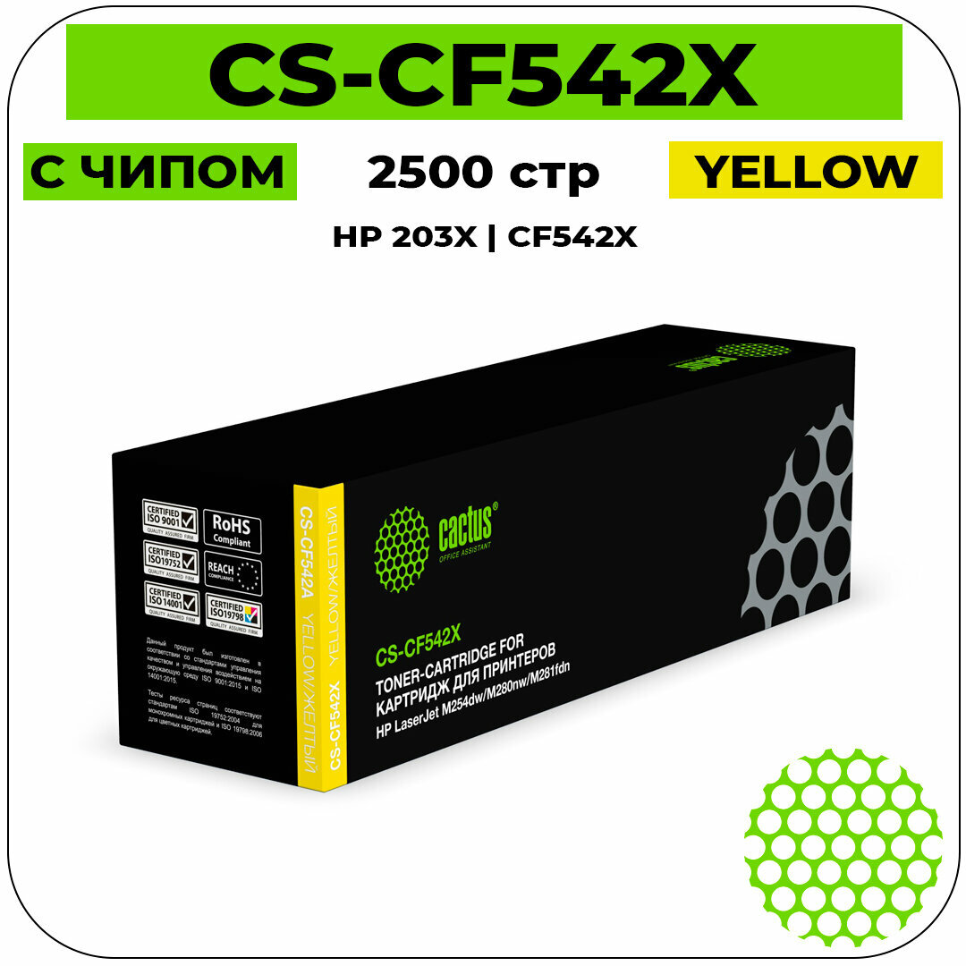 Картридж лазерный CACTUS (CS-CF542X) для HP LaserJet Pro M254/M280/M281, желтый, ресурс 2500 страниц