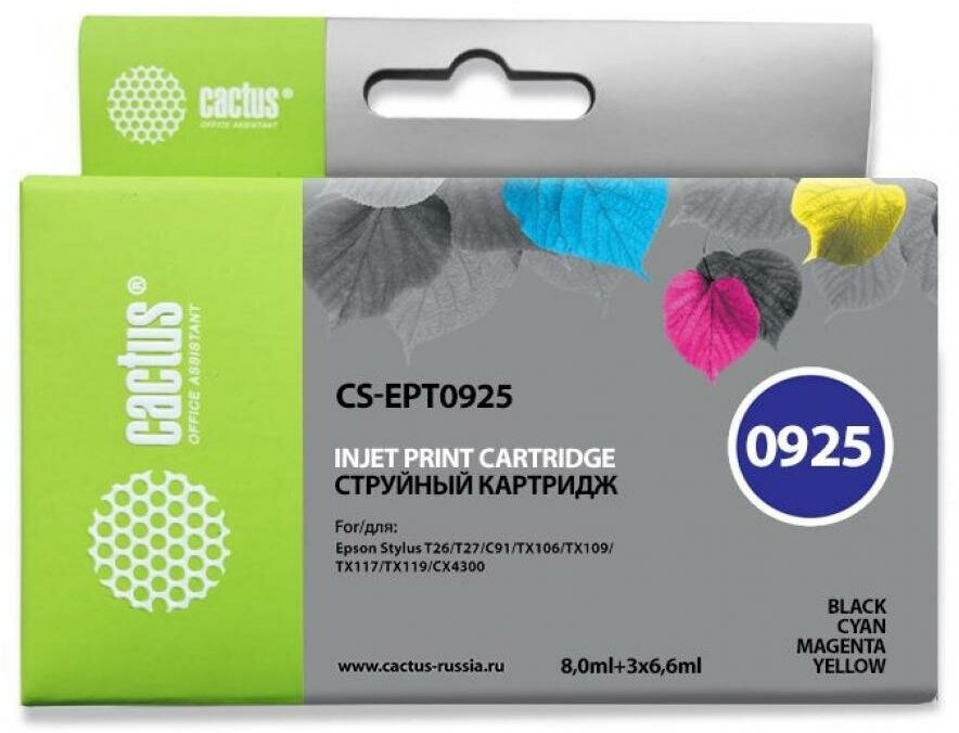 Картридж струйный Cactus CS-EPT0925 черный/голубой/пурпурный/желтый набор карт. для Epson Stylus C91/CX4300/T26/T27/TX106/TX109/TX117/TX119 CS-EPT0925