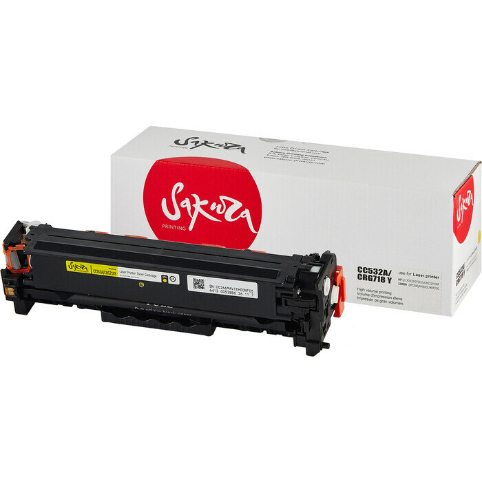 Картридж SAKURA CC532A/CRG718Y для HP, Canon, желтый, 2800 к. LJ CM2320fxiMFP/LJ CM2320nMFP/LJ CM2320nfMFP/LJ CP2025/LJ CP2025n/LJ CP2025dn/LJ CP2025x