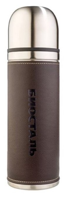 Термос Biostal Охота (0,75 литра) с кожаной вставкой, коричневый