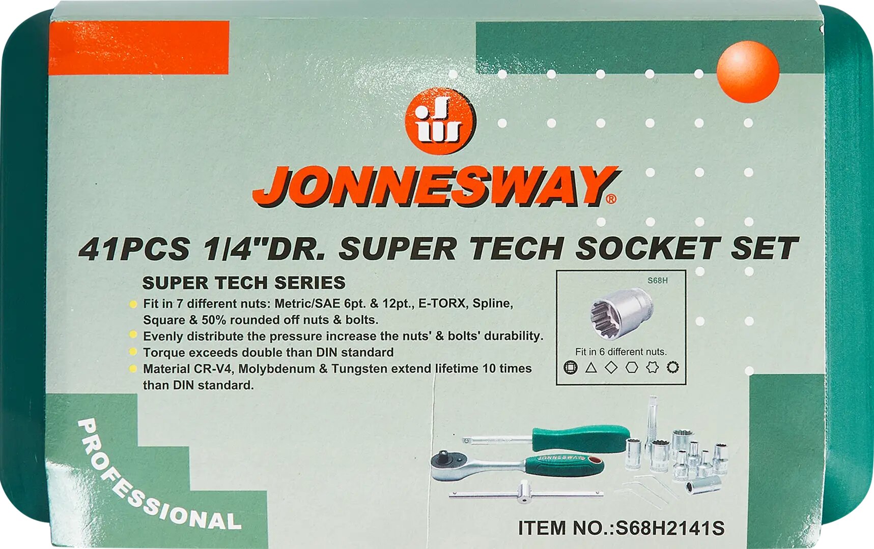 Набор инструмента 1/4" Super Tech, 41 предмет, S68H2141S Jonnesway, 48859