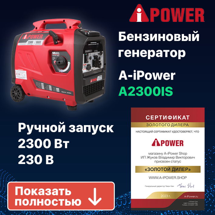 СохранитьБензиновый генератор A-iPower A2300IS, (2300 Вт) интересное: