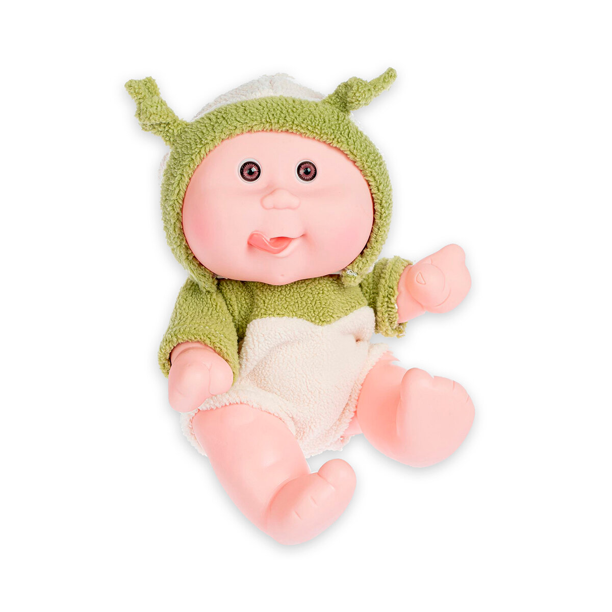 Пупс Bondibon Oly толстощёкий с улыбкой в зеленом костюме, 20 см, ВВ5071