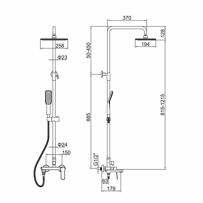 Душевая система A83123F, однорычажная, с тропическим душем, чёрная