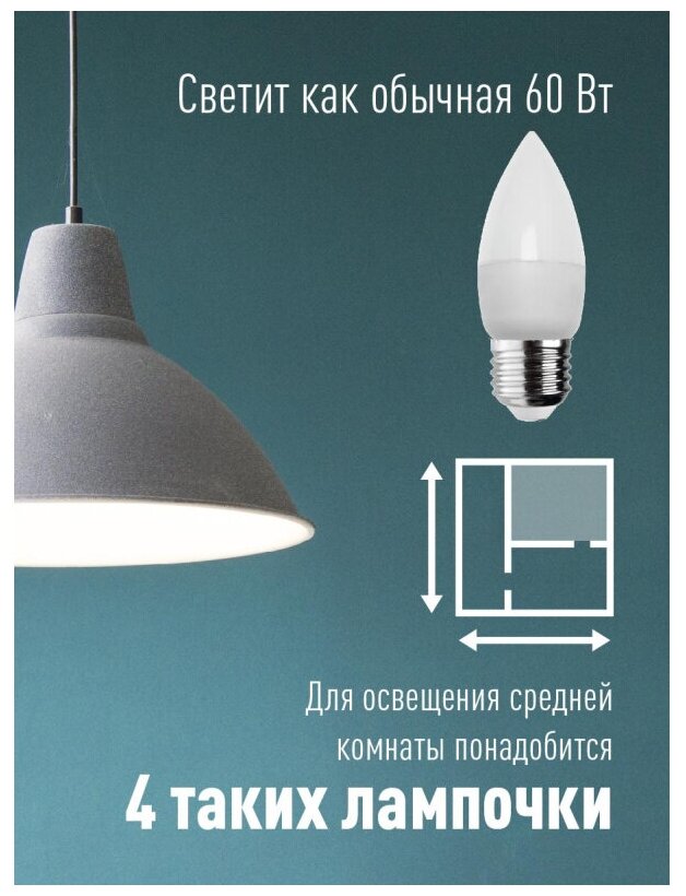 | Эквивалент лампы накаливания | 60 Вт |