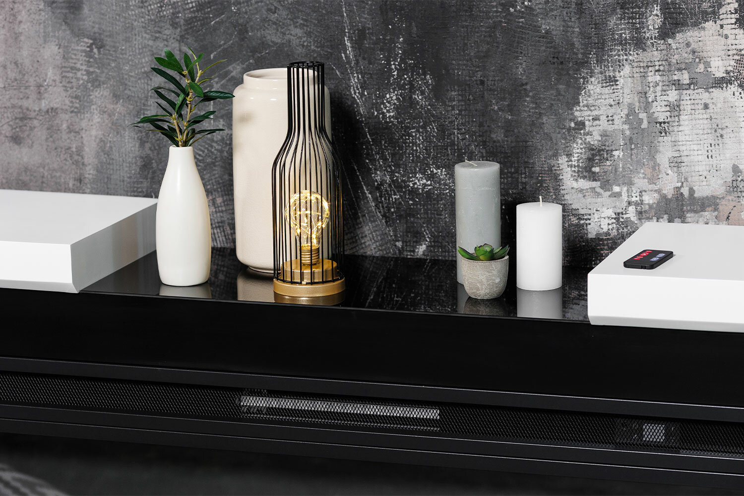 Каминокомплект Modern - Белый с черным с очагом Vision 60 LED