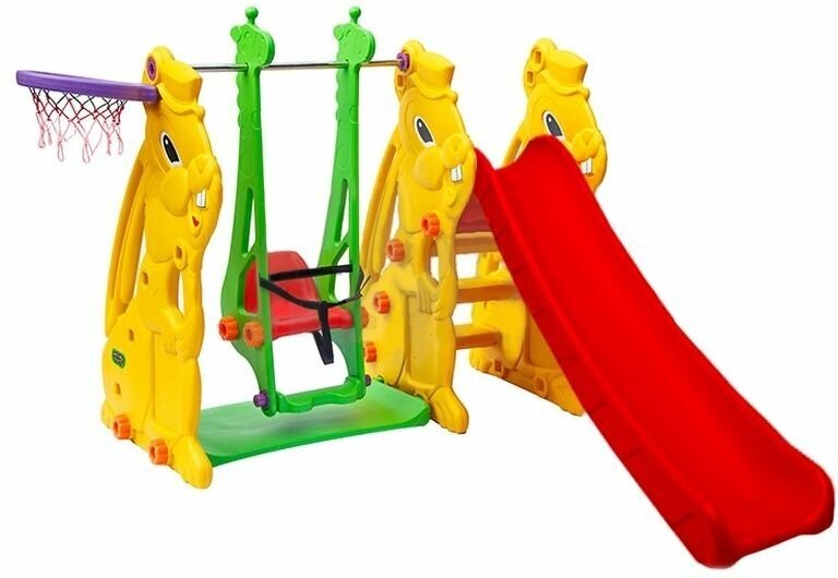 Горка + качели "Кролик" PS-033 желто-красная