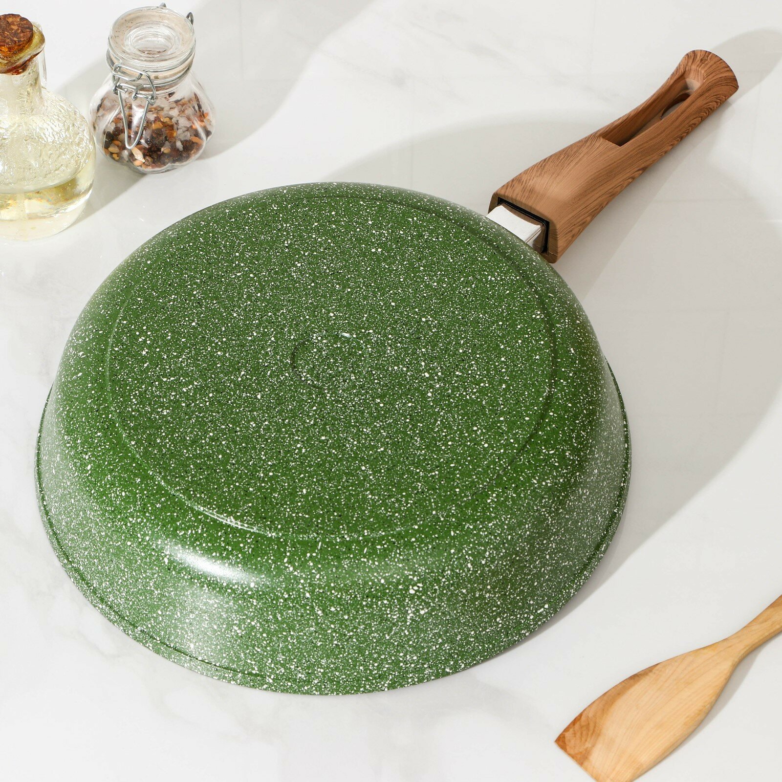 Купить Сковорода Доляна «Форест» d=28 см стеклянная крышка съёмная ручка антипригарное покрытие цвет зелёный